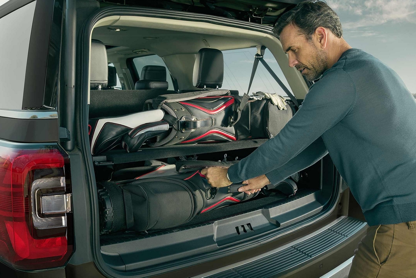 Exceptional cargo space for your family and all of your adventures. A full 104.6 cu. ft. behind the first row of seating.* 63.6 cu. ft. behind the second row and 20.9 cu. ft. behind the third row. Expedition MAX, at about a foot longer than the Expedition, adds another 16.9 cu. ft., totaling up to a maximum 121.5 cu. ft.**Â
