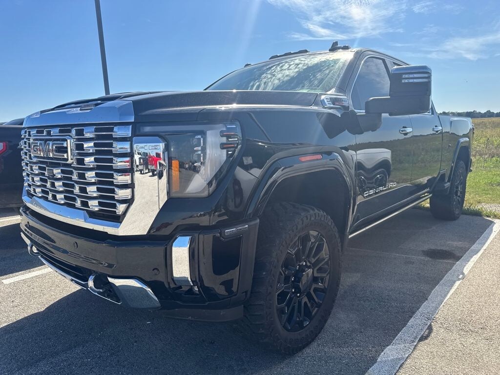 Clean CARFAX. Onyx Black 2024 GMC Sierra 2500HD Denali 4WD 10-Speed Automatic Duramax 6.6L V8 Turbodiesel 10-Speed Automatic, 4WD, Jet Black Leather.