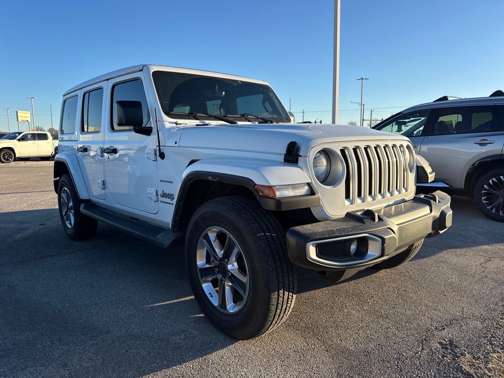 Clean CARFAX. Bright White Clearcoat 2023 Jeep Wrangler Sahara 4WD 8-Speed Automatic 3.6L V6 24V VVT